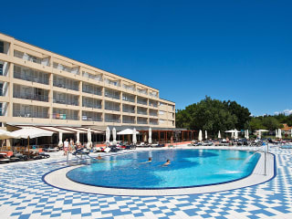 Sehr elegant und komfortabel, in der luxuriösen Umgebung des mediterranen Grün und Blau gelegen. Die 190 Gästezimmer erstrecken sich über vier Etagen und bieten kostenlos WLAN, LCD-TV, Klimaanlage und einen privaten Balkon. Vor der Tür befindet sich ein öffentlicher Kieselstrand mit Badeplattformen, während ein weiteres verlockendes Merkmal der Strand Bijeca ist, der einzige Sandstrand in der Umgebung. Das Hauptrestaurant des Hotels verfügt über eine Außenterrasse mit Blick auf den Swimmingpool und sein großes Sonnendeck. Erstklassiger Komfort, hochwertiger Service, freundliches Personal und die Ruhe der Natur mit endlosem Vergnügen sind für Gäste gedacht, die einen hemmungslosen und aktiven Urlaub wünschen.