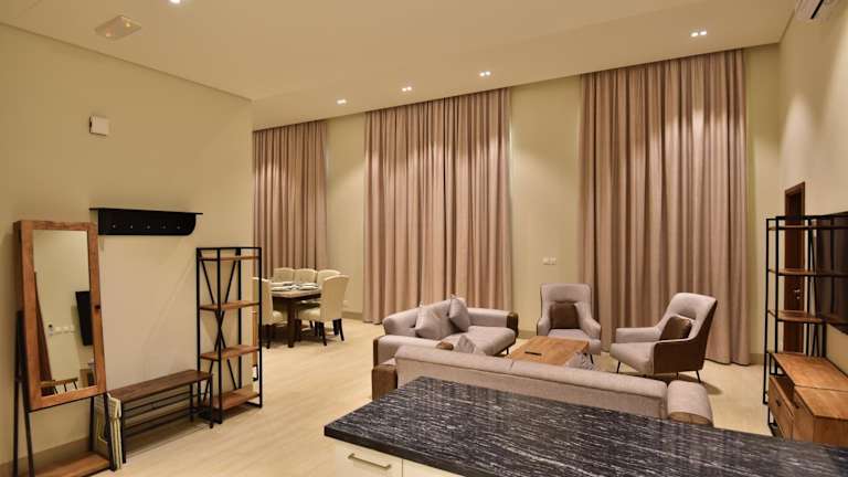 Die Unterkunft befindet sich in Salala, etwa 27 km von der Sultan-Qaboos-Moschee entfernt. Der nächstgelegene Flughafen, der Flughafen Salala, ist 24 km von der Unterkunft entfernt. Die Umgebung bietet Zugang zu einem Garten und einem eigenen Strandbereich.
