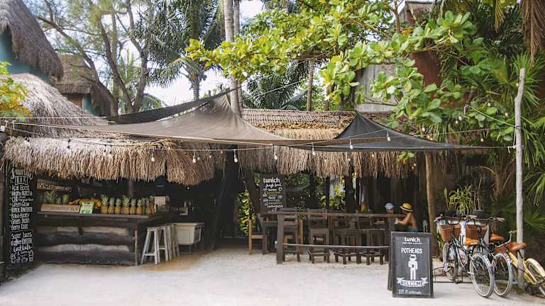 Das Tunich Jungle Cabañas befindet sich an der Dschungelseite der Beach Road innerhalb der Hotelzone von Tulum, etwa 10 Fahrminuten von der Stadt entfernt. Der Zugang zum Strand ist kostenfrei und direkt gegenüber der Unterkunft. In der Umgebung befinden sich zahlreiche Restaurants, Strandclubs und Geschäfte, die bequem mit dem Fahrrad oder Taxi erreicht werden können.