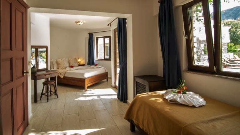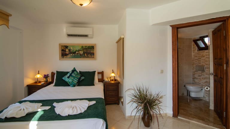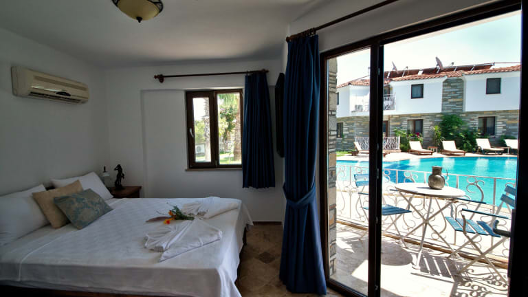Das Turay Hotel in Dalyan bietet Ihnen einen angenehmen Aufenthalt in einer schönen Umgebung. Genießen Sie den saisonalen Außenpool, den Garten und die Gemeinschaftslounge. Das Hotel verfügt über ein Restaurant und eine Bar, in denen Sie sich kulinarisch verwöhnen lassen können. Die Zimmer sind klimatisiert und bieten einen schönen Blick auf den Pool. Nutzen Sie das kostenfreie WLAN und den Zimmerservice. Das Hotel bietet auch einen Fahrradverleih, um die Gegend zu erkunden.