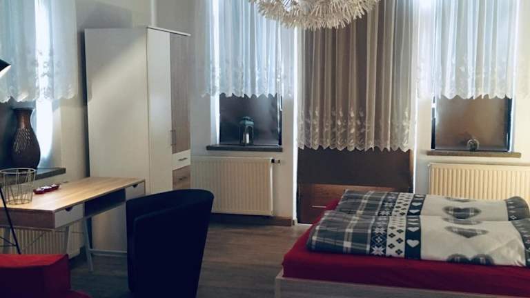 Die Unterkunft Turmvilla Vogtland ist eine Ferienwohnung, die kostenloses WLAN und Gartenblick bietet. Sie verfügt über einen Balkon mit Stadtblick, zwei Schlafzimmer, ein Wohnzimmer, eine gut ausgestattete Küche sowie ein Badezimmer mit Dusche und Badewanne. Des Weiteren stehen den Gästen ein Garten und Grillmöglichkeiten zur Verfügung. Die Unterkunft wird von einem privaten Gastgeber geführt und ist als Nichtraucherunterkunft konzipiert. Es sind keine Feiern wie Junggesellenabschiede erlaubt.