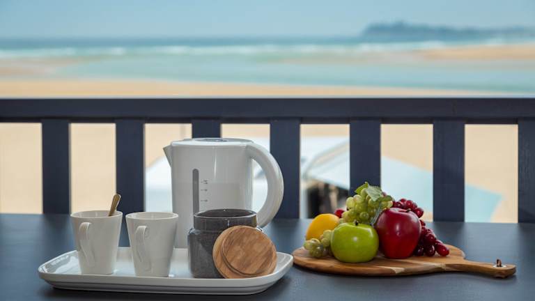 Die Unterkünfte sind so gestaltet, dass sie Selbstverpflegung bieten, und verfügen über einen Balkon mit Blick auf die Bucht und das Meer. Einige Modelle sind mit einem Grill ausgestattet.