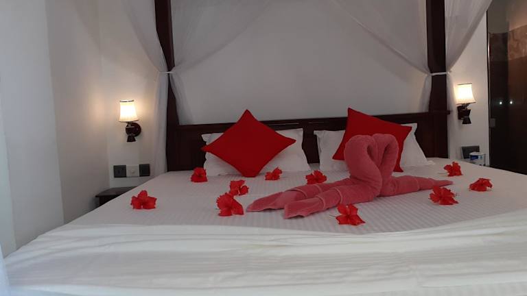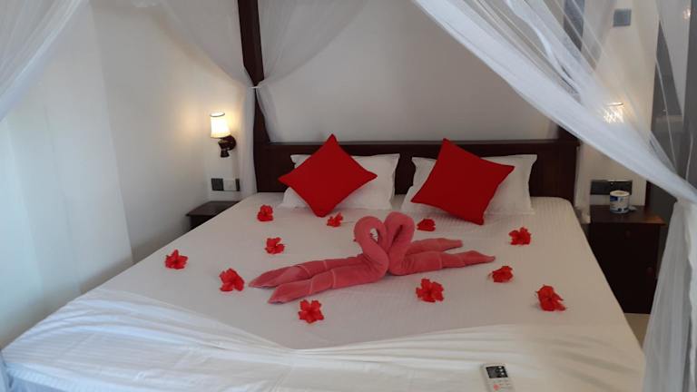 Das Turtle Reef Guest in Mirissa ist die perfekte Unterkunft für alle, die einen entspannten Strandurlaub in der Region Matara in Sri Lanka suchen. Mit kostenfreiem WLAN und Privatparkplätzen bietet dieses Bed & Breakfast alle Annehmlichkeiten, die man für einen angenehmen Aufenthalt benötigt. Starten Sie Ihren Tag mit einem köstlichen kontinentalen oder asiatischen Frühstück und entspannen Sie anschließend im schönen Garten der Unterkunft. Der Strand Weligambay ist nur 2,6 km entfernt und das internationale Cricketstadion Galle erreichen Sie nach 35 km. Bei Bedarf können Sie auch einen kostenpflichtigen Flughafentransfer zum 21 km entfernten Flughafen Koggala arrangieren lassen.