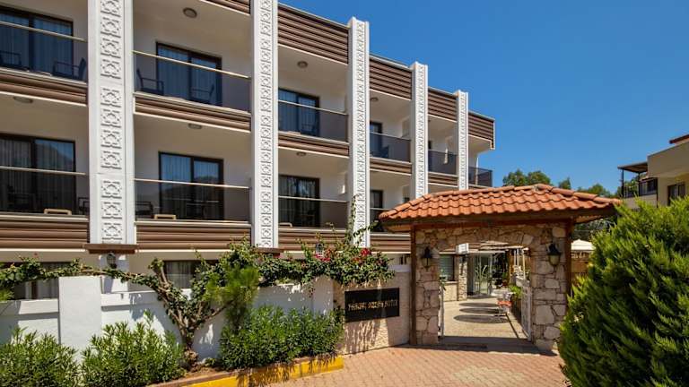 Das Turunc Dream Hotel ist ein charmantes Boutique-Hotel in Turunç, nur 50 Meter vom Strand entfernt. Die Unterkunft bietet eine entspannte Atmosphäre, einen schönen Außenpool und komfortable Zimmer. Genießen Sie All-Inclusive-Verpflegung und verschiedene Wassersportmöglichkeiten. Familien mit Kindern werden den Kinderspielplatz und den separaten Kinderpool zu schätzen wissen.