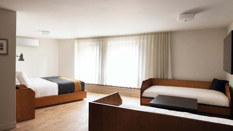 Die Zimmer sind mit hochwertigen Bettwaren, einer Auswahl an Kissen und praktischen Annehmlichkeiten wie einem Laptop-Safe und einem laptop-freundlichen Arbeitsplatz ausgestattet. Weitere Merkmale sind Heizung, Deckenventilatoren sowie Badezimmer mit Designer-Pflegeprodukten und einer Badewanne oder Dusche. Alle Zimmer verfügen zudem über einen 55-Zoll-Flachbild-Kabel-TV, einen Mini-Kühlschrank, Wasserkocher und einen täglichen Reinigungsservice.