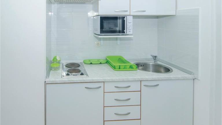 Die Wohnung bietet eine voll ausgestattete Küche mit Kühlschrank und Kaffeemaschine, jedoch keine spezifischen Informationen zu Verpflegungsmöglichkeiten.