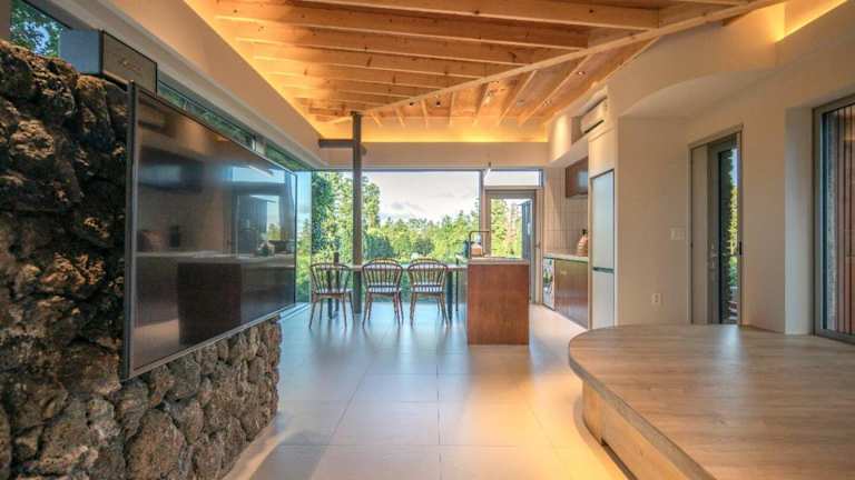 Erleben Sie einen traumhaften Aufenthalt im U.G.SODAM (Uigwisodam) auf der Insel Jeju. Diese luxuriöse Villa bietet einen eigenen Pool, kostenfreies WLAN und eine voll ausgestattete Küche. Genießen Sie die herrliche Terrasse mit Gartenblick und starten Sie jeden Tag mit einem köstlichen amerikanischen Frühstück. Die Lage des Hotels ermöglicht es Ihnen, die umliegende Natur und Sehenswürdigkeiten wie den Naturpark Hueree und die Soesokkak-Mündung zu erkunden.