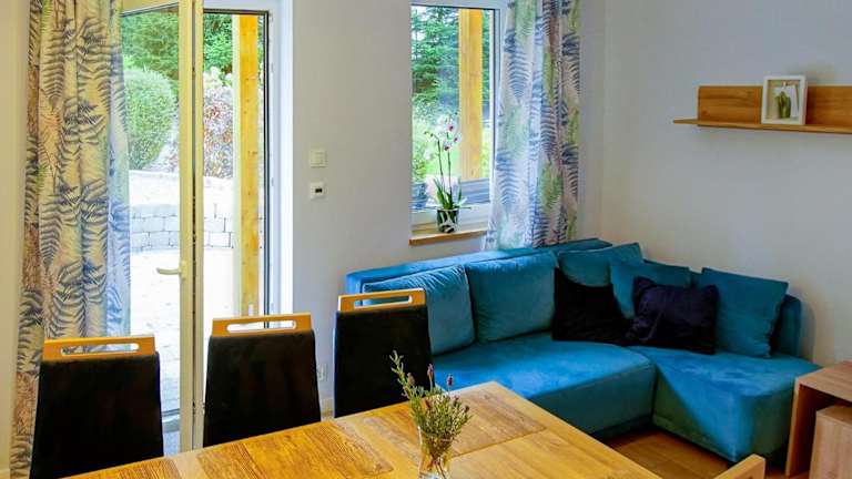 Das Chalet verfügt über zwei Schlafzimmer, ein Wohnzimmer, eine gut ausgestattete Küche mit Kühlschrank und Geschirrspüler sowie ein Badezimmer mit Dusche. Handtücher und Bettwäsche werden bereitgestellt.