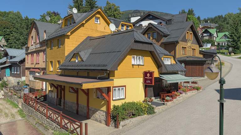 Die familiengeführte Pension U Komárků im Ortszentrum bietet komfortable Zimmer mit kostenfreiem WLAN und ein leckeres Frühstücksbuffet. Genießen Sie den Bergblick und entspannen Sie auf der Sommerterrasse. Die Skigebiete Hromovka, Petr und Medvědín sind nur einen kurzen Spaziergang entfernt, ebenso wie der Aquapark Spindlermühle. Eine Bushaltestelle und kostenfreie Parkplätze befinden sich in der Nähe der Pension.