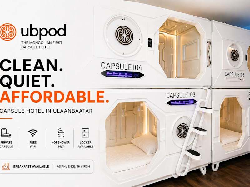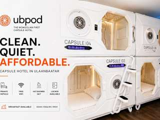 UBPOD- The First Capsule Hotel in Mongolia bietet klimatisierte Zimmer und eine Gemeinschaftslounge. Die Unterkunft zeichnet sich durch eine Sonnenterrasse aus und stellt einen Zimmerservice zur Verfügung.
