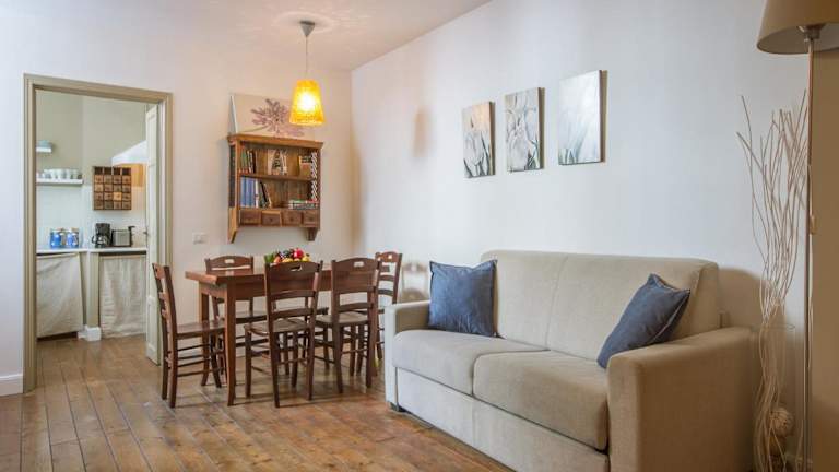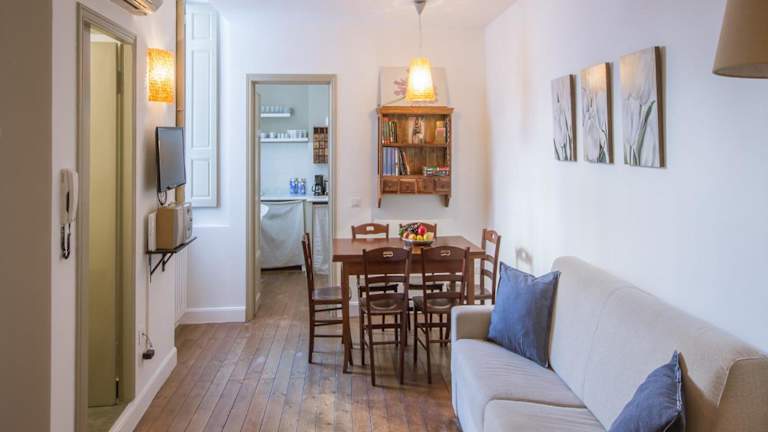 Die Ferienwohnung umfasst 2 Schlafzimmer, ein Wohnzimmer sowie eine voll ausgestattete Küche mit Kühlschrank und Kaffeemaschine. Es gibt 2 Badezimmer, ausgestattet mit Bidet und Dusche. Handtücher und Bettwäsche werden bereitgestellt, zudem ist die Wohnung klimatisiert.