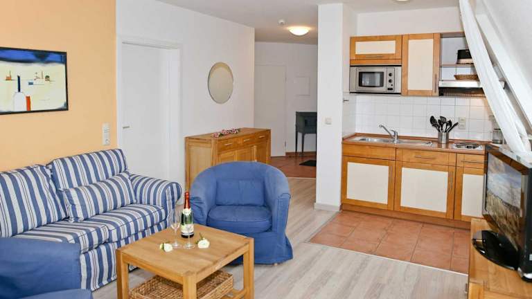 Die Ferienwohnung umfasst zwei Schlafzimmer, ein Wohnzimmer und eine voll ausgestattete Küche mit Kühlschrank und Kaffeemaschine. Des Weiteren gibt es ein Badezimmer mit Dusche.
