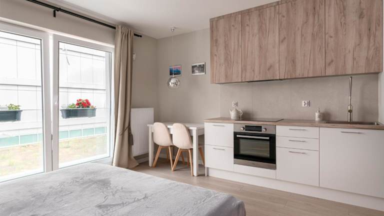Im Ultima können Sie Ihre eigenen Mahlzeiten in der gut ausgestatteten Küche zubereiten. Es gibt auch viele Restaurants und Cafés in der Umgebung, in denen Sie die polnische Küche und internationale Gerichte genießen können.