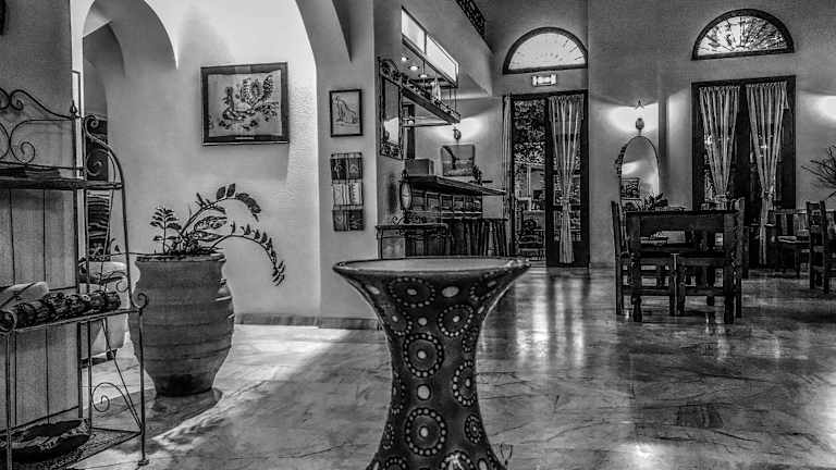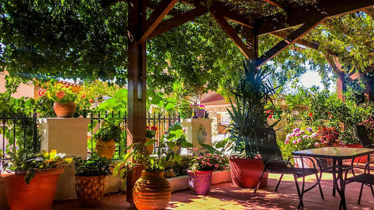Starten Sie Ihren Tag im Ulysses Hotel mit einem herzhaften Frühstück im schattigen Innenhof. In der Bar können Sie Getränke und Kaffee genießen, entweder in der Lounge im Innenbereich oder auf der Terrasse unter den Efeuranken.