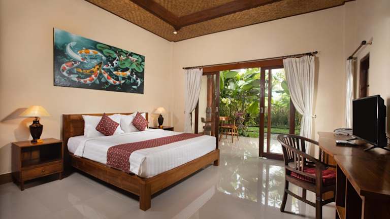 Die Zimmer im Uma Sari Cottage sind im balinesischen Stil gestaltet und bieten einen malerischen Blick auf die Tropenlandschaft. Jedes Zimmer verfügt über ein hochwertiges handgemachtes Holzbett, ein eigenes Bad mit Badewanne und entweder einen Ventilator oder eine Klimaanlage. Kostenloses WLAN ist ebenfalls vorhanden.