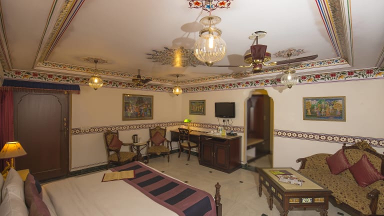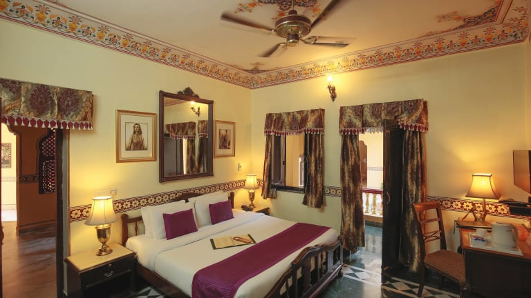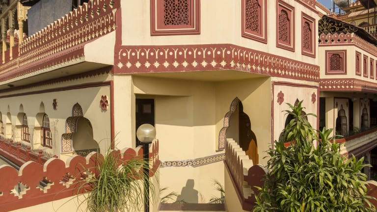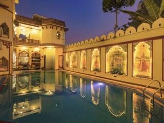 Das Umaid Bhawan in Jaipur ist ein charmantes Hotel im traditionellen Stil, das mit seinen kunstvoll geschnitzten Balkonen, schönen Innenhöfen, Terrassen und Gärten beeindruckt. Die Zimmer sind komfortabel eingerichtet und verfügen über antike Möbel. Das Hotel bietet einen Swimmingpool mit Fresken, ein Restaurant auf dem Dach und kostenfreies WLAN und Parkplätze. Es liegt in der Nähe der Bushaltestelle Sindhi Camp und des Flughafens Jaipur. Das freundliche Personal bietet einen kostenlosen Abholservice vom Bahnhof und dem zentralen Busbahnhof.