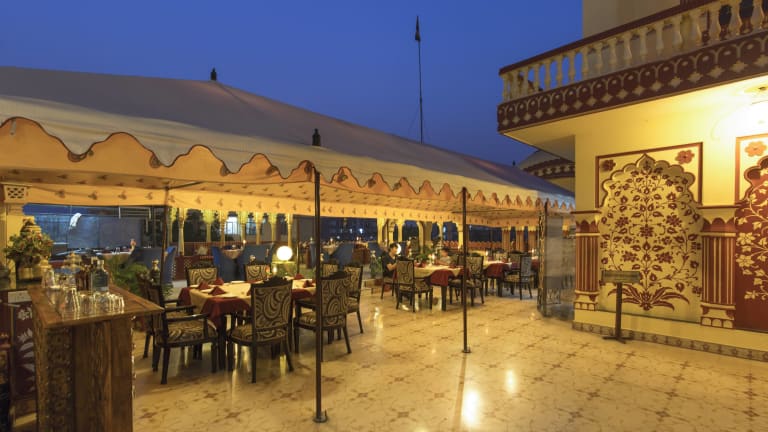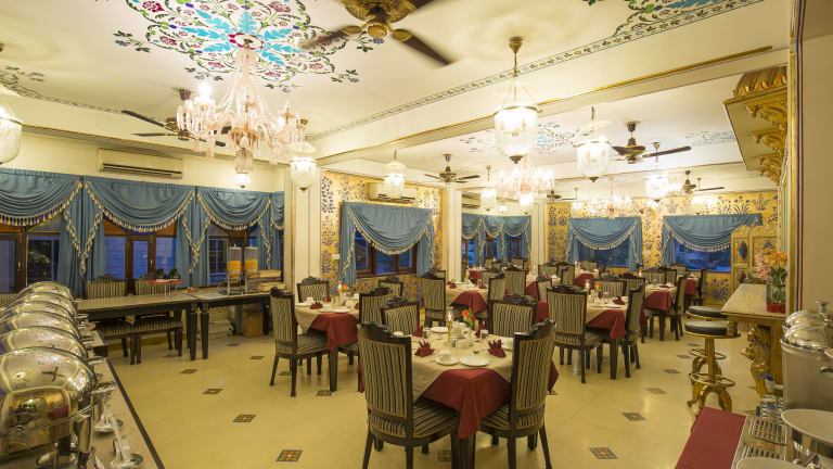 Im Umaid Bhawan können Sie im Restaurant auf dem Dach speisen und lokale Gerichte genießen. Das Restaurant bietet auch ein Live-Puppenspiel und die Möglichkeit, unter freiem Himmel zu essen.