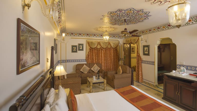 Das Umaid Bhawan bietet insgesamt 41 Zimmer, die sich auf 4 Etagen verteilen. Die Zimmer sind über einen Aufzug erreichbar und verfügen über eine Klimaanlage, einen Ventilator, einen Safe, eine Minibar und einen Schreibtisch. Zur weiteren Ausstattung gehören ein Telefon, ein TV-Gerät mit Satellitenempfang und Pay-per-View-Option sowie kostenfreies WLAN. Im Badezimmer finden Sie eine Dusche, eine Badewanne, einen Haartrockner und kostenlose Kosmetikartikel. Einige Zimmer sind rollstuhlgerecht und verfügen über ein barrierefreies Bad.