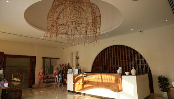 Das Hotel befindet sich am Ufer des Umm Al Quwain Beach, umgeben von tropischen Gärten mit Palmen. Die Entfernung zum internationalen Flughafen Dubai beträgt etwa 45 km, während das Stadtzentrum von Ajman in 15 Fahrminuten erreicht werden kann. Das Hotel liegt in ruhiger, erster Strandlage, der hoteleigene Strand bietet flach abfallenden Sand, Liegen und Sonnenschirme.