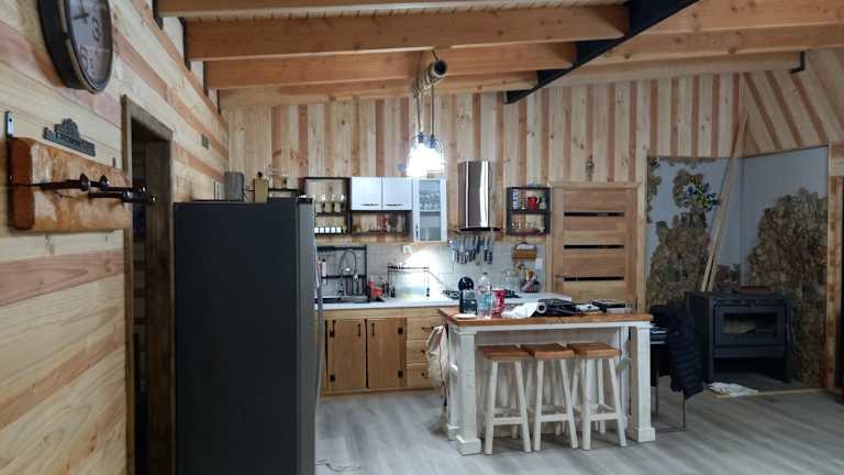 Die Unterkunft verfügt über eine gut ausgestattete Küche mit Kühlschrank, Ofen und Mikrowelle, die den Gästen die Möglichkeit bietet, ihre eigenen Mahlzeiten zuzubereiten.