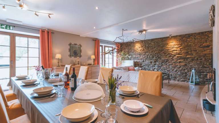 Das Ferienhaus Une parenthèse en Ardenne bietet 6 komfortable Schlafzimmer und 2 Badezimmer mit einer Badewanne bzw. einer Dusche. Von der Terrasse aus können Sie den Blick auf den Fluss genießen. Das Ferienhaus verfügt über einen Flachbild-Kabel-TV und eine gut ausgestattete Küche mit Kühlschrank, Geschirrspüler und Backofen. Für zusätzlichen Komfort stehen Ihnen Hausschuhe zur Verfügung. WLAN ist im gesamten Ferienhaus kostenfrei verfügbar.