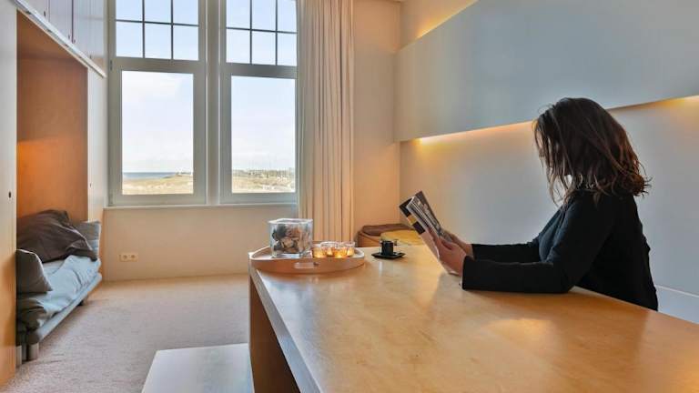 Die Ferienwohnung Uniek ingerichte ruimte met magnifiek zeezicht! bietet einen eigenen Strandbereich und beeindruckenden Meerblick. Die Unterkunft wird privat geführt und ist eine Nichtraucherunterkunft. Es sind keine Junggesellenabschiede oder ähnliche Feiern erlaubt, und es besteht ein Mindestalter für den Check-in von 18 Jahren.