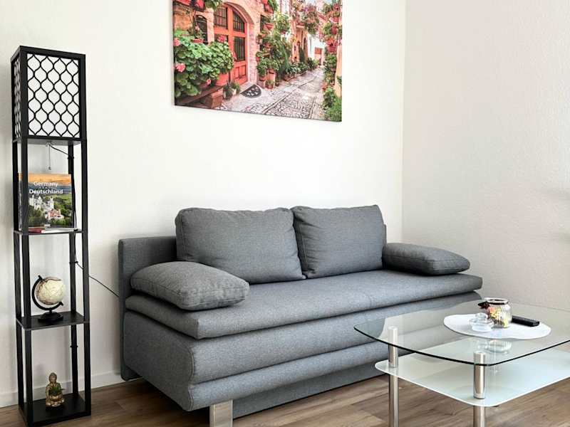 Die Ferienwohnung umfasst ein Schlafzimmer, ein Wohnzimmer sowie eine voll ausgestattete Küche mit Kühlschrank und Kaffeemaschine. Zur Ausstattung gehört außerdem ein Badezimmer mit Badewanne oder Dusche und kostenlosen Pflegeprodukten. Handtücher und Bettwäsche werden bereitgestellt.