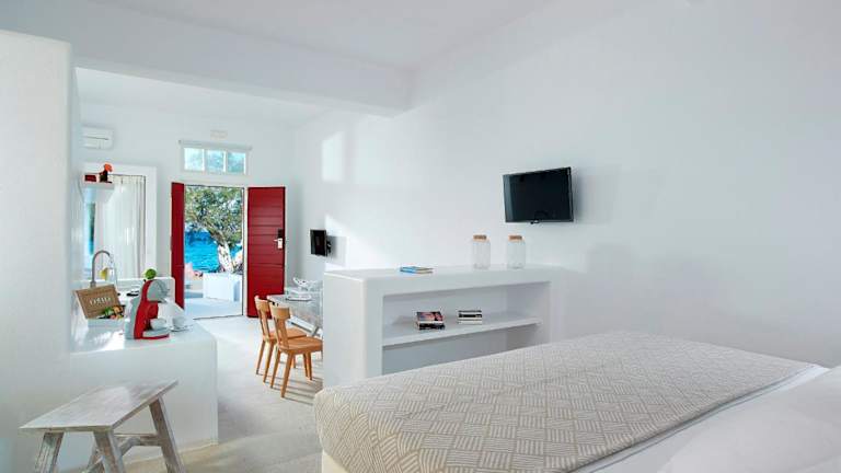 In Pollonia finden Sie eine Vielzahl von Restaurants, in denen Sie köstliche griechische Küche und frischen Fisch genießen können. Wenn Sie lieber selbst kochen möchten, bietet Ihnen die voll ausgestattete Küche in Ihrer Suite alle Möglichkeiten dazu.