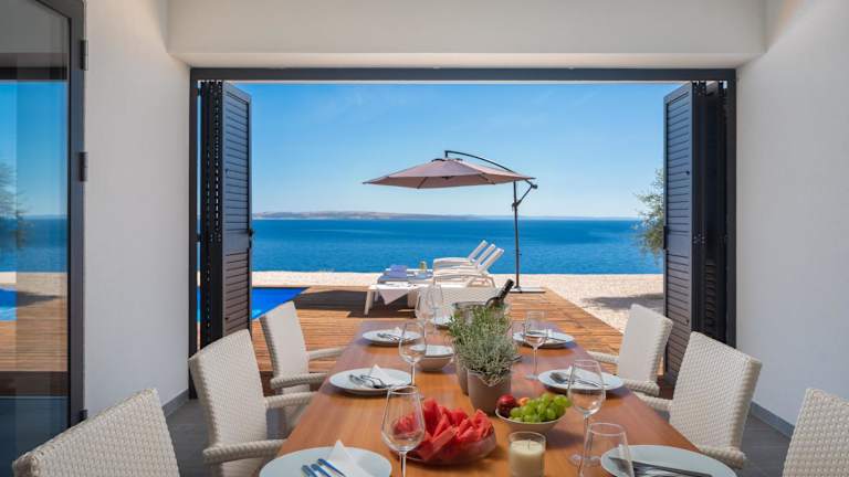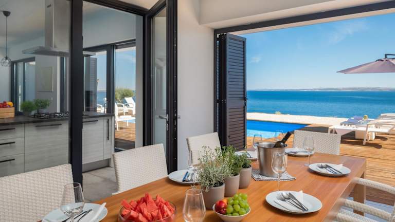 In der Villa steht eine voll ausgestattete Küche zur Verfügung, die es den Gästen ermöglicht, ihre eigenen Mahlzeiten zuzubereiten. Lebensmittellieferungen sind auf Anfrage gegen zusätzliche Gebühren möglich.