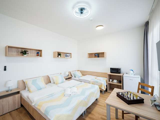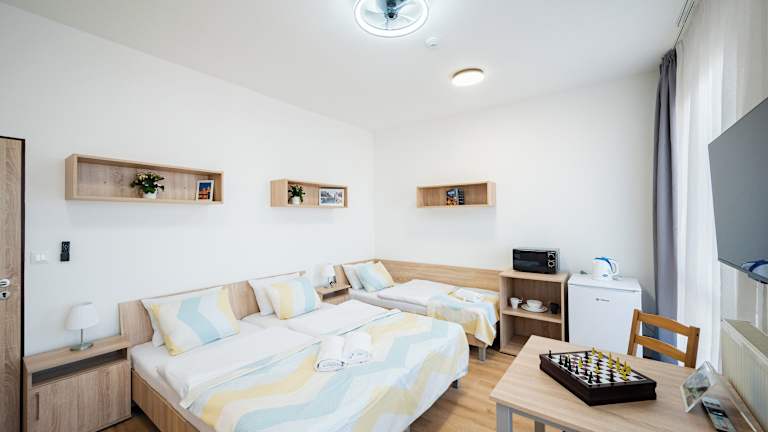 Das University Hotel in Prag 3 ist eine geräumige Unterkunft mit einer günstigen Lage, nur 15 Minuten mit der Straßenbahn vom Stadtzentrum entfernt. Die Zimmer sind mit einer eigenen Küchenzeile ausgestattet und bieten kostenfreies WLAN. Das Hotel verfügt über eine 24-Stunden-Rezeption und Restaurants befinden sich in unmittelbarer Nähe. Die öffentlichen Verkehrsmittel sind gut erreichbar und ermöglichen es den Gästen, bequem die Sehenswürdigkeiten von Prag zu erkunden.