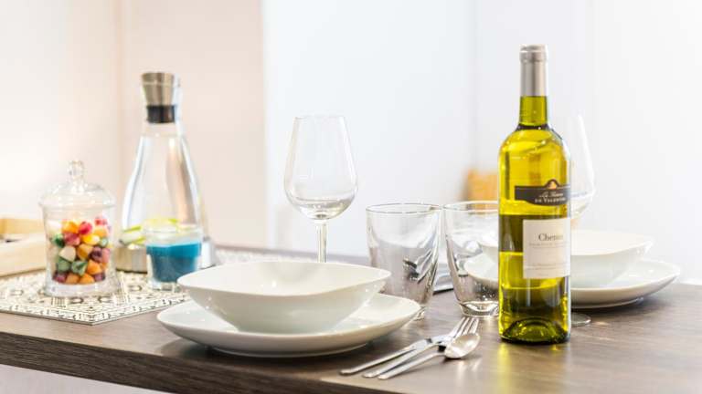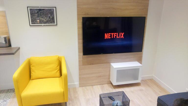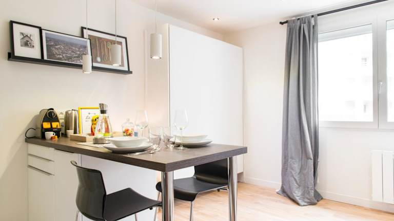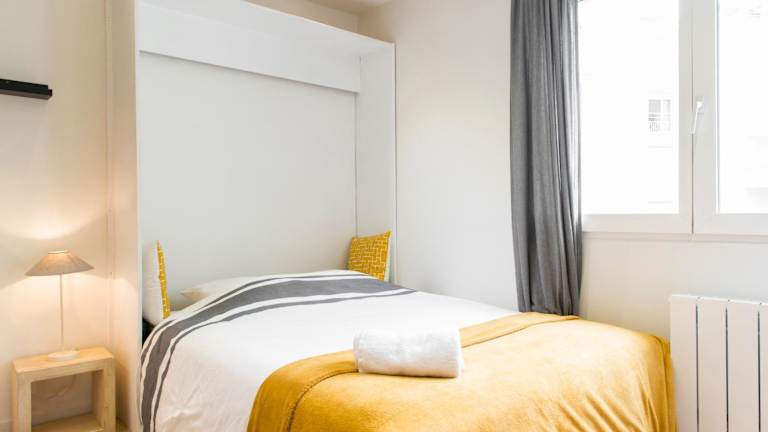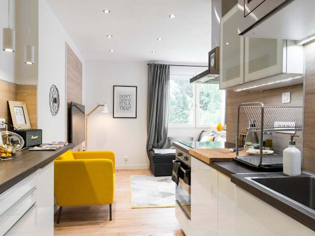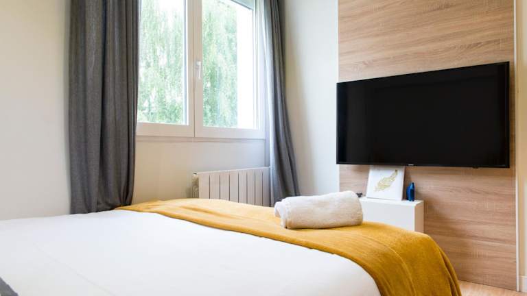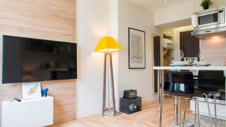 Die Ferienwohnung besteht aus einem Schlafzimmer, einem Wohnzimmer und einer voll ausgestatteten Küche, die mit einem Kühlschrank und einer Kaffeemaschine ausgestattet ist. Ein Badezimmer mit Badewanne oder Dusche und kostenlosen Pflegeprodukten ist ebenfalls vorhanden. Handtücher und Bettwäsche werden bereitgestellt. Zu den weiteren Annehmlichkeiten gehören schallisolierte Zimmer, Klimaanlage und die Möglichkeit, eine Rechnung auf Anfrage zu erhalten.