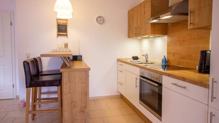 Die Ferienwohnung verfügt über ein Schlafzimmer, ein Wohnzimmer mit einem TV mit Satellitenkanälen, eine voll ausgestattete Küche mit Kühlschrank und Geschirrspüler und ein Badezimmer mit Dusche. Handtücher und Bettwäsche werden zur Verfügung gestellt.