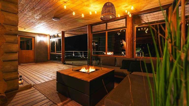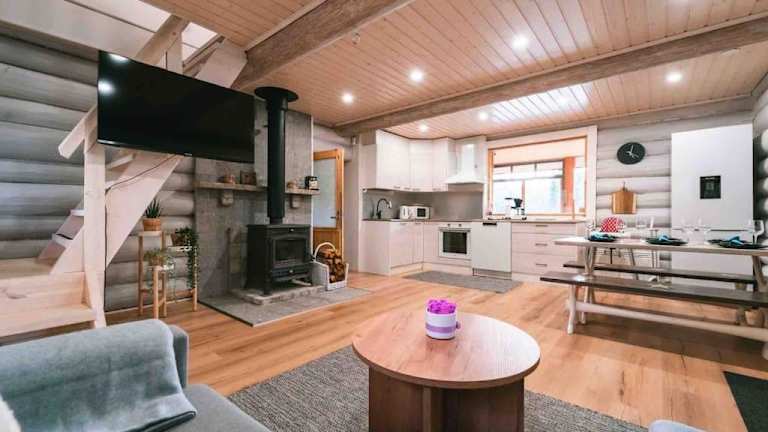 Upea hirsi mökki ulkoporeltaalla sekä kelosaunalla bietet Übernachtungsmöglichkeiten in einem Ferienhaus mit Gartenblick. Die Unterkunft ist mit einem kostenlosen Privatparkplatz sowie kostenlosem WLAN ausgestattet und bietet eine Klimaanlage. Die Unterkunft hat zudem eine Terrasse.