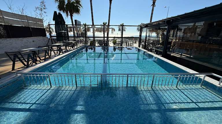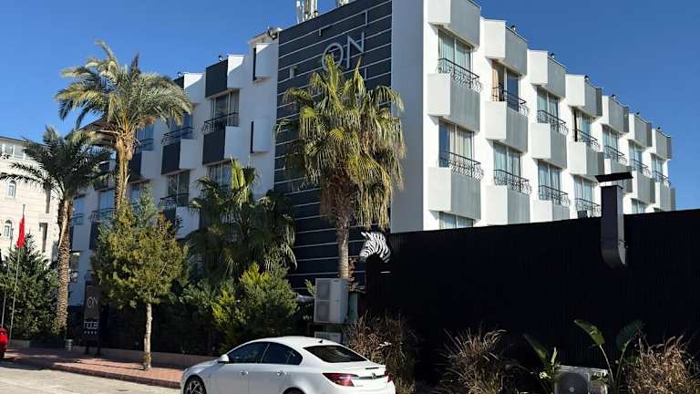 Ein kleines Hotel in die Jahre gekommen. Zwar an der Küste mit eventuellem Meerblick, der Lara Strand ist aber gut 4 km entfernt. Also für einen Badeurlaub ungeeignet. Der Pool war im November leer, auch sonst vermutlich nicht der Hit. WLAN hat trotz anderer Ankündigung auf unserem Zimmer funktioniert, man konnte dies auch sehen mit an der Wand hängenden WLAN Routern im Flur und unter dem schäbigen Teppich verlegten Kabeln. Es waren nur Männer beim Frühstück, vermutlich türkische Geschäftsleute und eine Fußball…