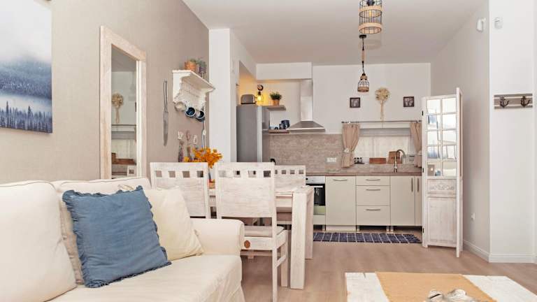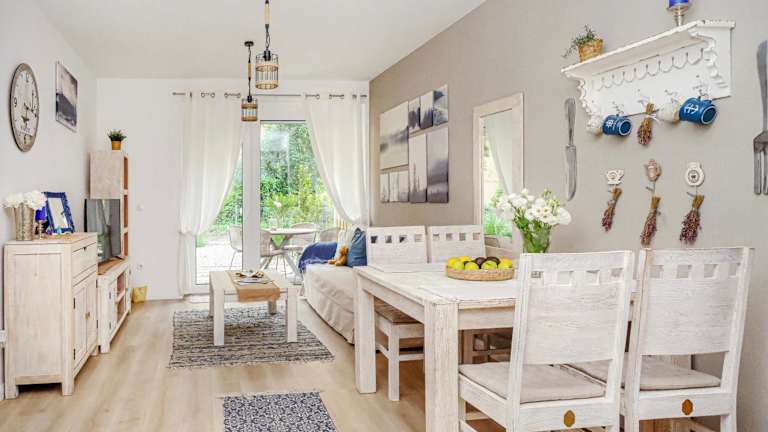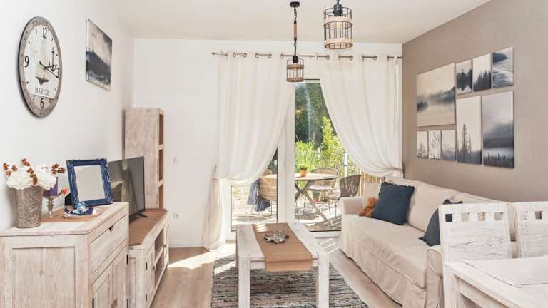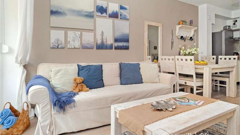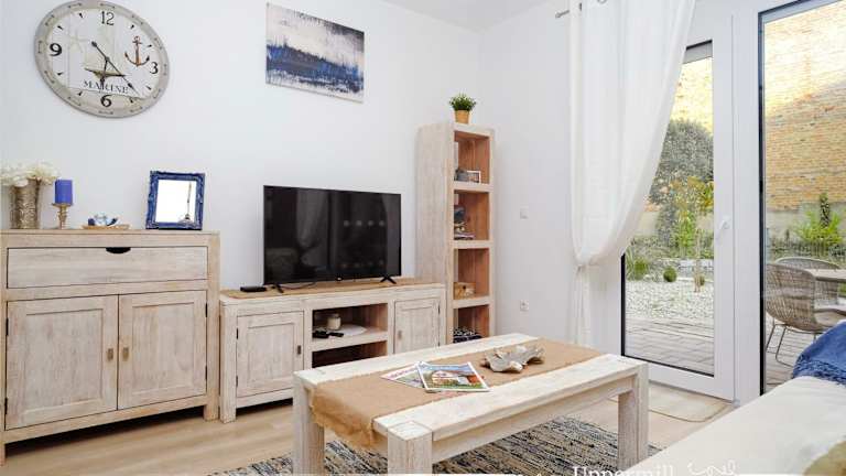 Die Ferienwohnung besteht aus einem Schlafzimmer und einem Wohnzimmer. Es gibt eine voll ausgestattete Küche, die mit einem Kühlschrank und einer Kaffeemaschine ausgestattet ist. Das Badezimmer verfügt über eine Badewanne oder Dusche sowie einen Haartrockner. Handtücher und Bettwäsche werden bereitgestellt.