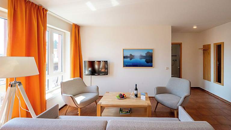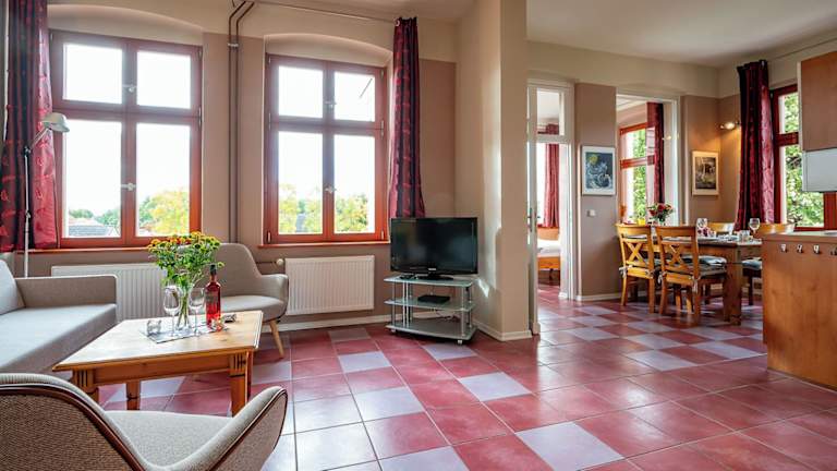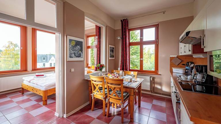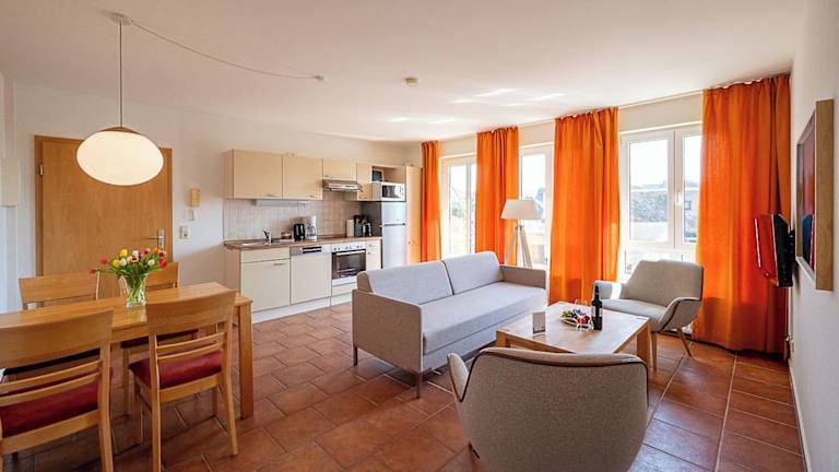 Die Wohneinheiten sind mit einem Sitzbereich, einem Schlafsofa und einem Essbereich ausgestattet. Jede Unterkunft verfügt über eine voll ausgestattete Küchenzeile, die einen Kühlschrank, Ofen, Mikrowelle und Herdplatte umfasst. Zudem gibt es ein eigenes Badezimmer mit Badewanne oder Dusche und Haartrockner.