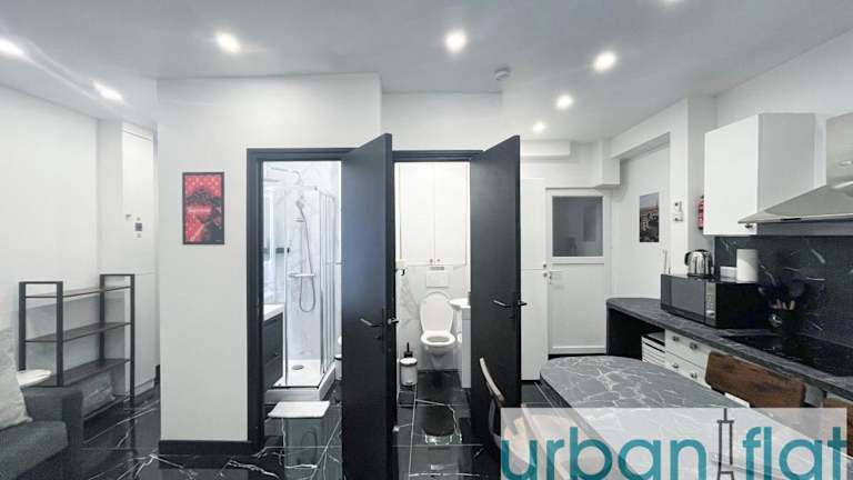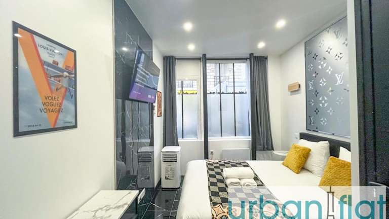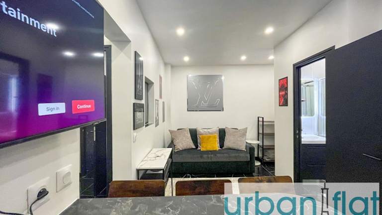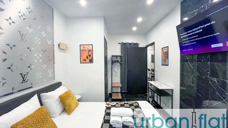 Urban Flat 189 - Atelier Montparnasse Vuitton bietet Übernachtungsmöglichkeiten in einer modernen Ferienwohnung. Die Unterkunft umfasst zwei Schlafzimmer, ein Wohnzimmer sowie eine voll ausgestattete Küche mit Kühlschrank und Kaffeemaschine. Das Badezimmer ist mit einer Dusche und einem Haartrockner ausgestattet. Handtücher und Bettwäsche werden bereitgestellt. Es handelt sich um eine Nichtraucherunterkunft, und Feiern wie Junggesellenabschiede sind nicht gestattet.