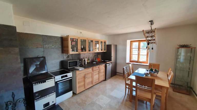 Das Ferienhaus umfasst zwei Schlafzimmer, ein Wohnzimmer sowie ein Badezimmer mit Dusche. Eine gut ausgestattete Küche ist vorhanden, die einen Kühlschrank und einen Geschirrspüler beinhaltet. Die Unterkunft bietet zudem einen Flachbild-TV, Handtücher und Bettwäsche sind inklusive. Eine Terrasse mit Bergblick ergänzt das Angebot.