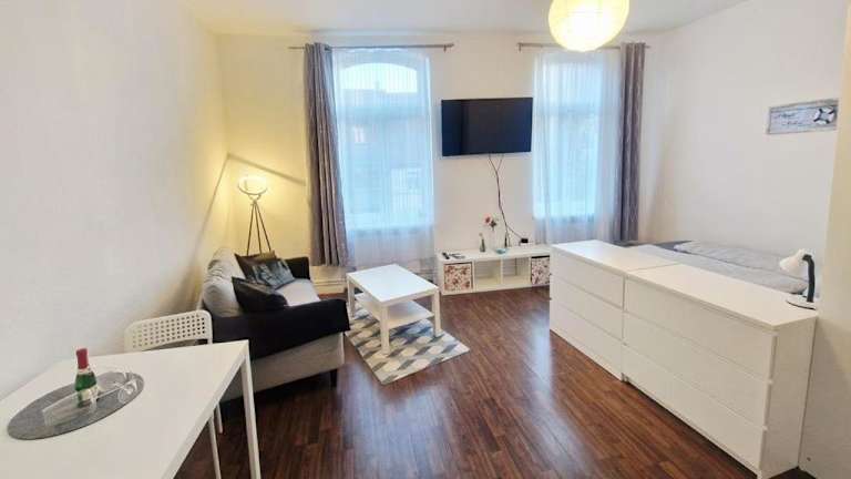 Die Unterkunft "Urlaub im Herzen Wismars 1OG Süd B" bietet eine Ferienwohnung im ersten Obergeschoss mit modernen Annehmlichkeiten. Es handelt sich um eine privat geführte Unterkunft, in der weder Junggesellen- noch ähnliche Feiern erlaubt sind. Die Mindestalter für den Check-in und die Gäste beträgt 18 Jahre. Haustiere sind nicht gestattet. Die Unterkunft gewährleistet hohe Hygienestandards und Reinigung durch professionelle Firmen.