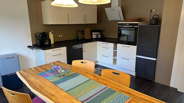 Die Ferienwohnung ist umfassend ausgestattet mit zwei Schlafzimmern, einem Badezimmer, Bettwäsche, Handtüchern, einem Flachbild-TV, einem Essbereich und einer voll ausgestatteten Küche.