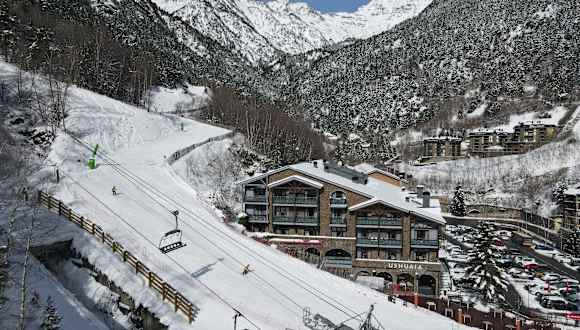 Das Hotel ist direkt neben den Pisten von Les Marrades gelegen, nur wenige Schritte vom Skilift Pal-Arinsal entfernt. Das Zentrum von Arinsal ist etwa 800 m entfernt und die Entfernung nach Andorra la Vella beträgt ca. 10 km. Die Umgebung ist von der beeindruckenden Berglandschaft der Pyrenäen geprägt. Die internationalen Flughäfen von Barcelona und Toulouse-Blagnac sind jeweils rund 250 km entfernt.