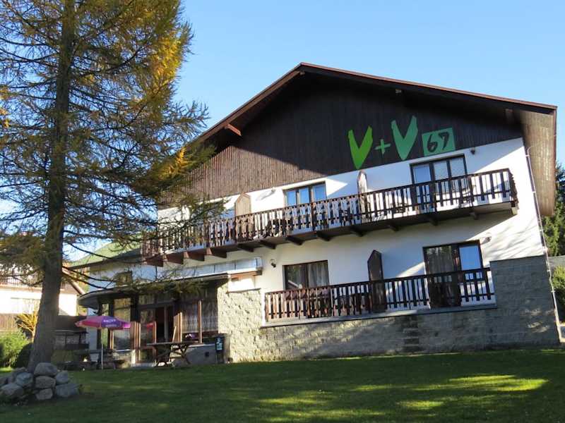 Die V+V Pension in Harrachov ist eine ideale Wahl für einen Aufenthalt in der Nähe der Skipisten und bietet kostenfreies WLAN, einen schönen Garten und eine praktische Skiaufbewahrung. Die gemütlichen Zimmer sind mit allen notwendigen Annehmlichkeiten ausgestattet und jeden Morgen erwartet Sie ein leckeres Frühstück. Die Pension bietet auch eine Gemeinschaftslounge, einen Billardtisch und eine Bowlingbahn, um Ihren Aufenthalt noch angenehmer zu gestalten. In der Umgebung finden Sie Restaurants, Geschäfte und Sehenswürdigkeiten wie die Harrachov Ski Jumps und das Glasmuseum.