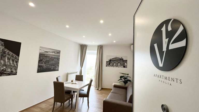 Das V12 Apartments Puglia Modugno bietet Übernachtungsmöglichkeiten in Form von Apartments. Die Unterkunft ist klimatisiert und verfügt über einen Balkon sowie kostenloses WLAN. Sie eignet sich sowohl für kurze als auch längere Aufenthalte und bietet unter anderem zwei Schlafzimmer und ein Badezimmer.