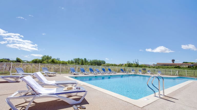 Die Residenz befindet sich in Colombiers, inmitten von Weinbergen, etwa 2 Gehminuten vom Zentrum des traditionellen Dorfes entfernt. Restaurants, öffentliche Verkehrsanbindungen und Einkaufsmöglichkeiten sind in etwa 5 Minuten erreichbar. Die Lage an den Ufern des Canal de Midi ermöglicht einen guten Zugang zu den Stränden von Valras und Vias, die jeweils nur ca. 15 Minuten mit dem Auto entfernt sind. Weitere sehenswerte Orte in der Umgebung sind Béziers (ca. 15 km), Narbonne Kathedrale (rund 20 km), die mittelalterliche Stadt Pézenas (ca. 40 km) und Carcassonne (ca. 90 km).