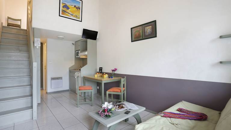 Das Hotel Vacancéole - Résid'Price in Merville bietet komfortable Maisonette-Apartments mit kostenfreiem WLAN. Die Unterkunft liegt in der Nähe des Flughafens Blagnac und ist ein idealer Ausgangspunkt, um die Stadt Toulouse zu erkunden. Die Apartments sind hell und modern eingerichtet und verfügen über separate Schlafzimmer im Obergeschoss. Ein Frühstücksbuffet steht jeden Morgen zur Verfügung und in der Küchenzeile können Sie Ihre eigenen Mahlzeiten zubereiten. Das Hotel bietet auch kostenfreie Parkplätze und ist gut an die Autobahn A62 angebunden.