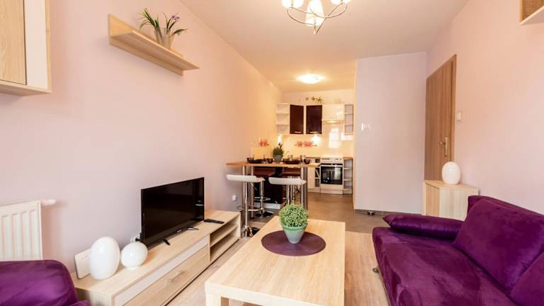 Das VacationClub - Osiedle Podgórze 1E Apartament 20 in Schreiberhau ist eine ideale Unterkunft für Ihren Aufenthalt in der Region. Das Apartment bietet einen schönen Garten und kostenfreie Privatparkplätze. Die Lage ist perfekt für Aktivitäten wie Wandern und Skifahren. Das Apartment selbst verfügt über ein gemütliches Schlafzimmer, ein Wohnzimmer, eine gut ausgestattete Küchenzeile und ein modernes Badezimmer. Handtücher und Bettwäsche werden gestellt. In der Nähe finden Sie verschiedene Sehenswürdigkeiten wie den Dinopark und den Wasserfall Szklarki. Der nächste Flughafen ist nur 120 km entfernt.