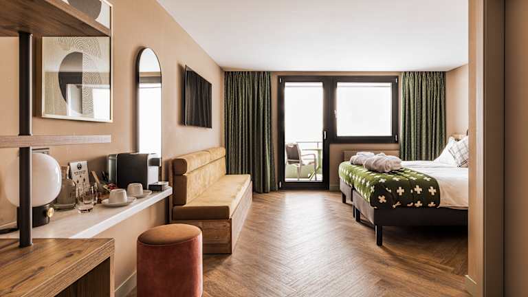 Das Valaisia Crans-Montana vereint stilvolles alpines Design mit einem atemberaubenden Panoramablick auf die Alpen und einer warmen, einladenden Atmosphäre für Familien und Freunde. Nach der Renovierung im Jahr 2022 bietet es moderne 800 m² große Wellnessbereiche, alpine-chic Zimmer und kulinarische Highlights in unseren Restaurants und der Bar. Mit direktem Zugang zu den Skipisten, Golfplätzen und Wanderwegen von Crans-Montana ist das Valaisia der ideale Ausgangspunkt für aktive und gleichzeitig erholsame Auszeiten. Unsere Gäste schätzen besonders den echten Ski-in/Ski-out-Komfort, die umfassenden Wellnessangebote und den beeindruckenden 180°-Blick auf die Alpen. Auf einem Hochplateau in der berühmten Schweizer Wein- und Käseregion gelegen, bietet dieses Lifestyle-Resort mit seinem alpinen Chic die perfekte Kulisse für unvergessliche Bergerlebnisse und absolute Entspannung.