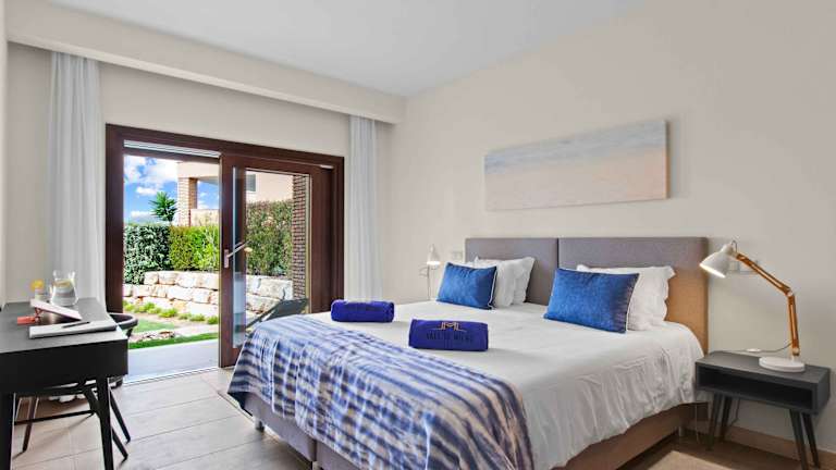 Die Unterkünfte im Vale de Milho Village sind geräumige Stadthäuser, die einen luxuriösen und komfortablen Aufenthalt bieten. Jedes Haus verfügt über einen eigenen Garten und einen privaten Pool, in dem Sie sich entspannen und erfrischen können. Die Zimmer sind geschmackvoll eingerichtet und bieten einen atemberaubenden Blick auf den natürlichen See und das Meer im Hintergrund. Die Einrichtungen sind modern und komfortabel und bieten alles, was Sie für einen angenehmen Aufenthalt benötigen.