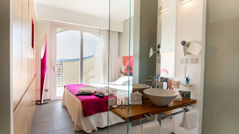 Das Valentino Resort ist ein luxuriöses Designhotel, das mit einem Whirlpool auf dem Dach und einem atemberaubenden Panoramablick auf die Adria beeindruckt. Genießen Sie den Pool, das Wellnesscenter und den kostenfreien Strandzugang. Die Suiten bieten modernen Komfort und Annehmlichkeiten wie einen LCD-Sat-TV und eine Küchenzeile. Das Hotel bietet auch ein köstliches Frühstück und einen Wellnessbereich mit türkischem Bad, Sauna und Massageservice. Im Sommer können Sie den eigenen Strand mit Sonnenschirmen und Liegestühlen nutzen. Die Lage des Hotels ermöglicht es Ihnen, leicht auf die Autobahn A14 und den Bahnhof von San Benedetto del Tronto zuzugreifen.