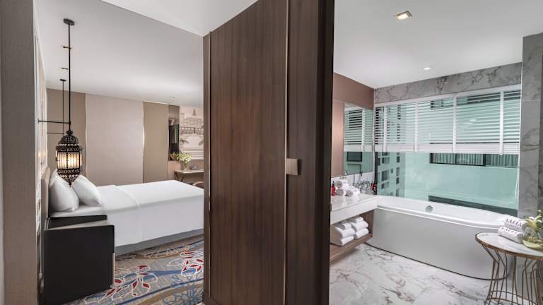 Das Valia Hotel Bangkok befindet sich im Herzen von Bangkok an der Sukhumvit 24. Dank des kostenlosen Tuk-Tuk-Shuttles gelangen Sie in nur 3 Minuten zum Emporium-Einkaufszentrum und zur BTS-Skytrain-Station Phrom Phong. Die Lage des Hotels ist auch günstig für einen Besuch des Queen Sirikit Kongresszentrums, des MedPark Hospitals und des trendigen K Village Einkaufszentrums. Die BTS-Station Phrom Phong, die MRT-Station Queen Sirikit National Convention Centre, die Rama IV Road und der Port Tollway sind ebenfalls bequem zu Fuß erreichbar.